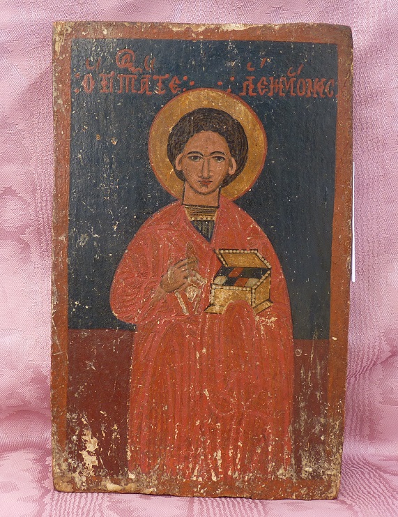 Heiliger Panteleimon.Griechisch,um 1800.Grösse 23,5x14,5cm.Originaler Zustand.