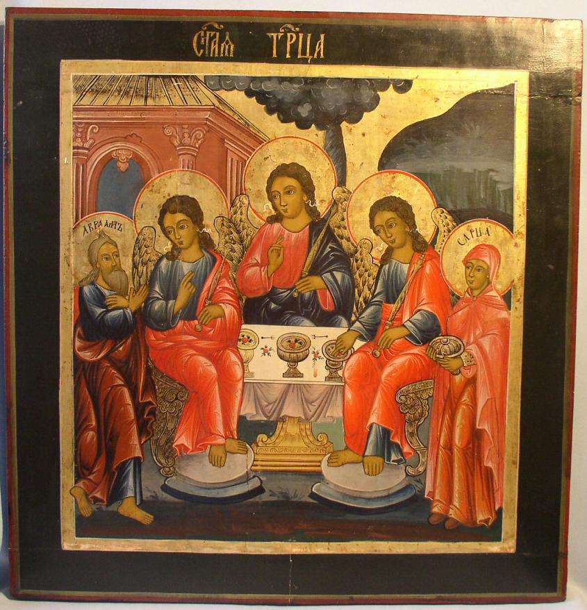 Heilige Dreifaltigkeit,östlicher Typus.Russisch,Anfang 19.Jahrhundert.54x52cm.Grosse Ikone,gut erhalten.
