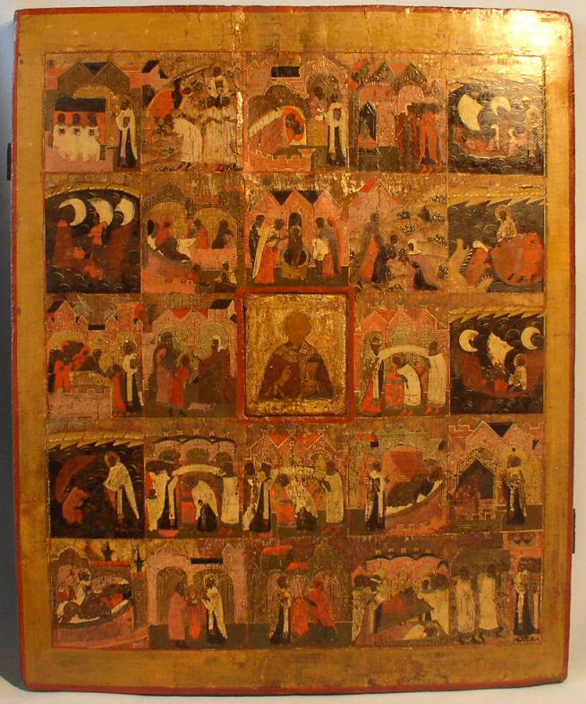 Leben des Heiligen Hikolaus.Russisch,16.Jahrhundert (um 1550).52x45cm.Sammlerstück von guter Qualität.Äußerst selten!