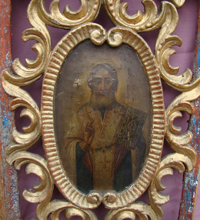 Heiliger Grigorij.Rumönischer Balkan,Ende 18.Jahrhundert.Originaler geschnitzter Rahmen.95x35cm.Seltenes dekoratives Stück.