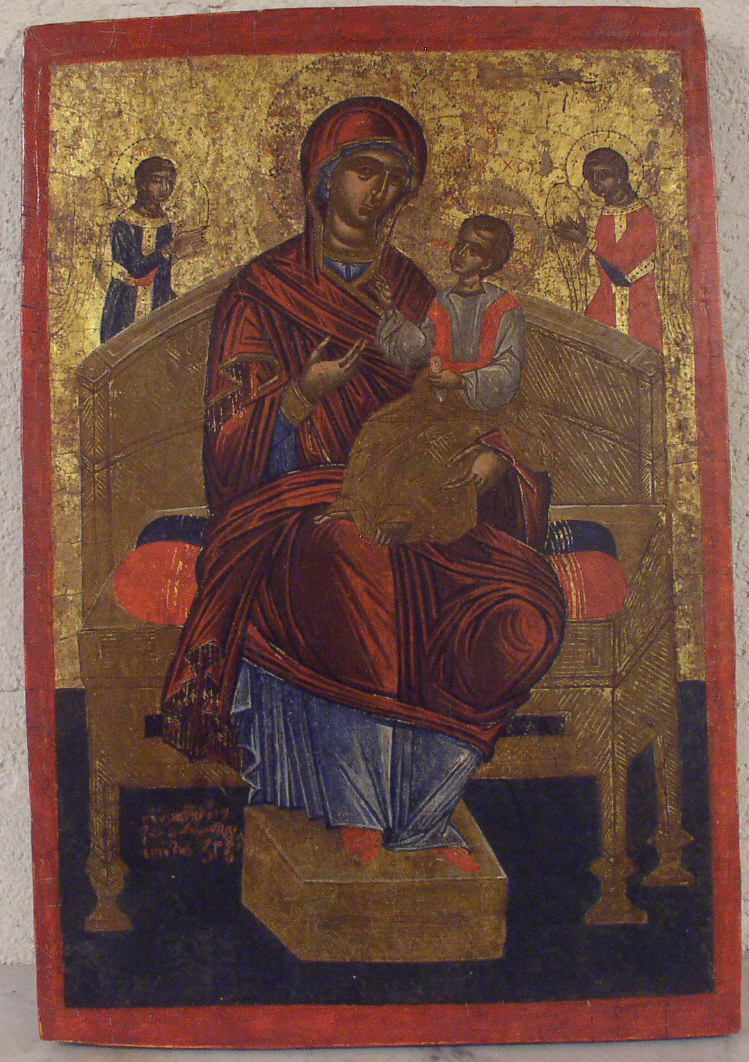 Gottesmutter Platytera.Griechisch-mazedonisch,datiert 1652.54x38cm.Sammlerstück von guter Qualität.