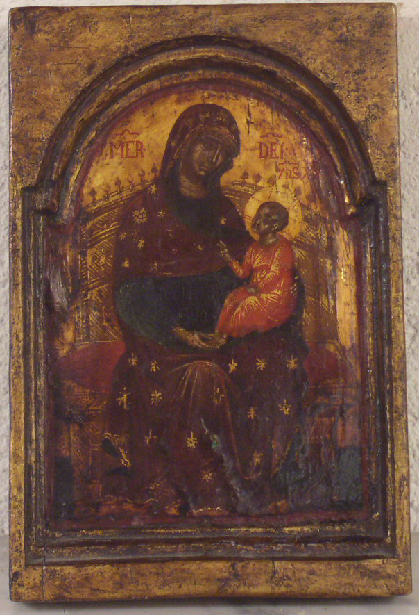 Gottesmutter mit Kind.Griechisch-venezianisch,15.Jahrhundert.22x14cm.Mittelteil eines Triptychons.Wahrscheinlich aus der griechischen Kolonie in Venedig.