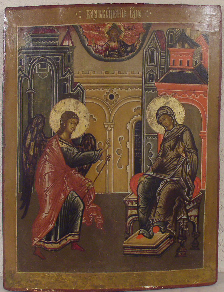 Verkündigung an die Gottesmutter.Nordrussisch,um 1700.Gut erhalten.70x55cm.Sammlerstück!
