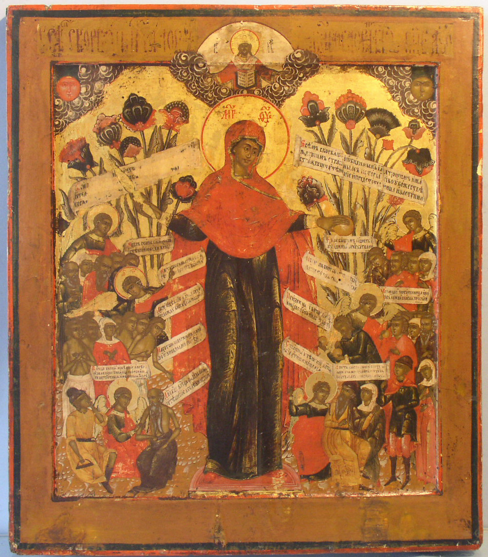 Muttergottes Aller Betrübten Freude.Russisch,18.Jahrhundert.45x39cm.Gut erhalten,kleine Fehlstellen.Sammlerstück!