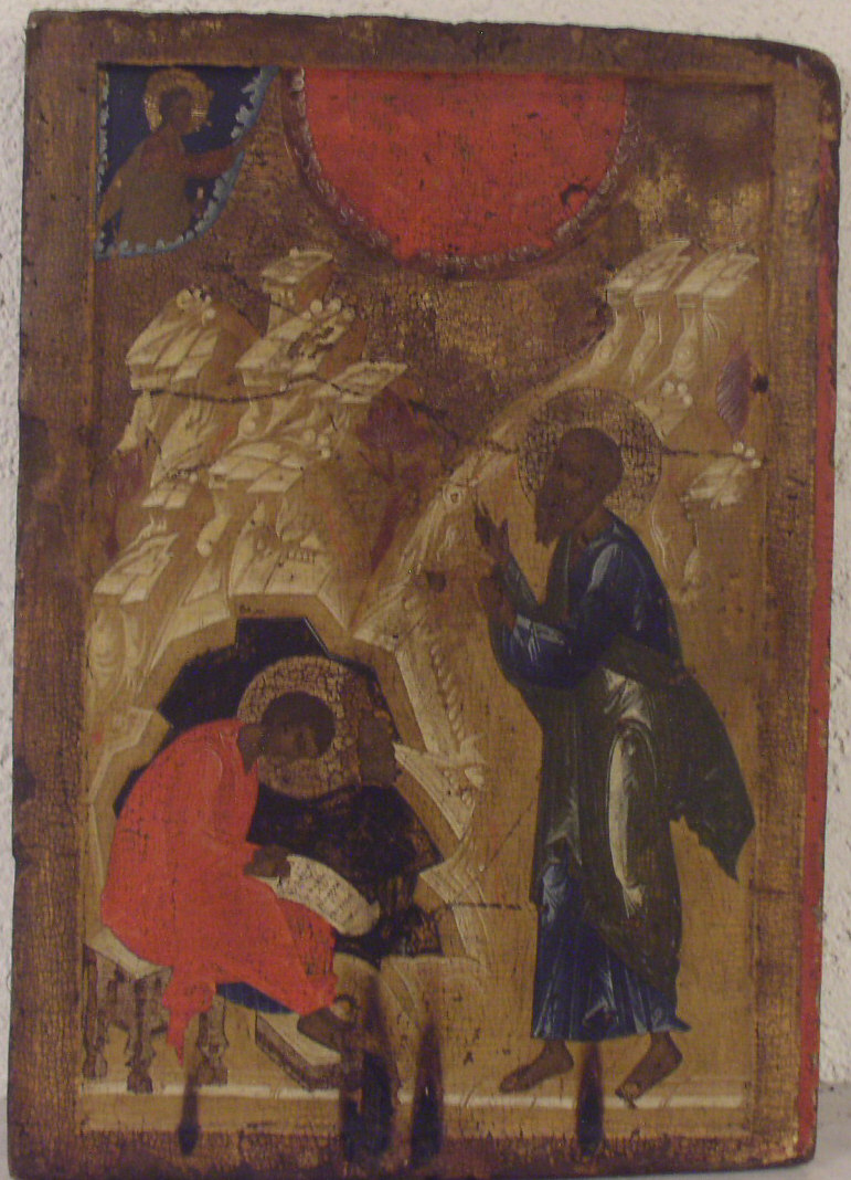 Evangelist Johannes mit seinem Schüler Prochoros.Zentralrussisch,16.Jahrhundert.54x38cm.Qualitätvolles Sammlerstück!