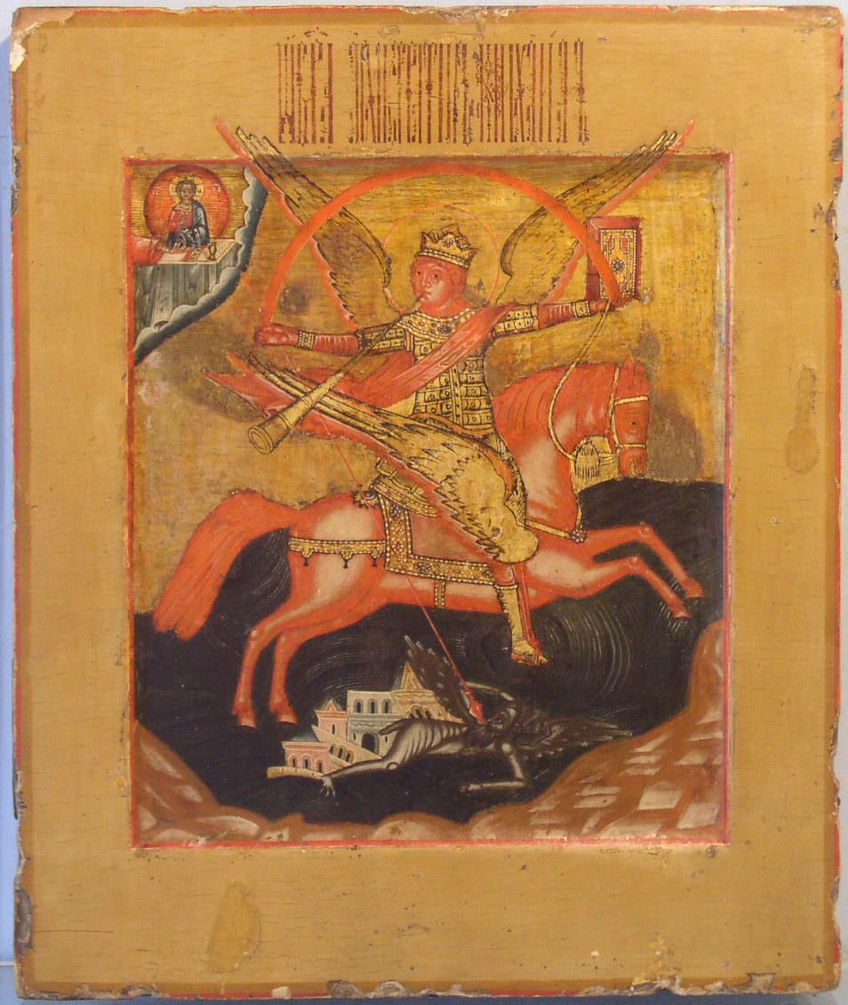 Erzengel Michael das jüngste Gericht verkündent.Russische Altgläubigenarbeit,18.Jahrhundert.32x27cm.Sammlerstück!