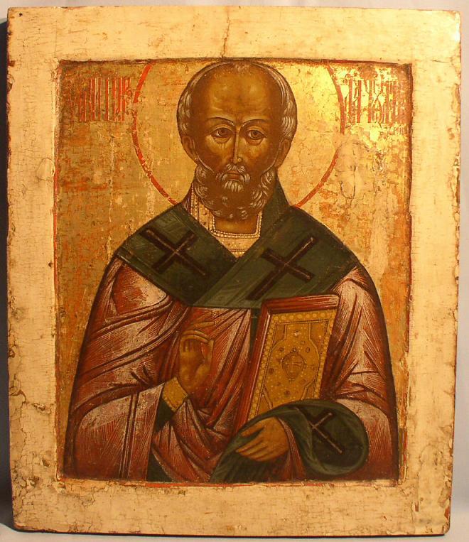 | Doppelseitige Vortrageikone (Prozessionsikone).Zentralrussisch um 1800.51x44cm.Heiliger Nikolaus um 1800.Gottesmutter Wladimirskaja Ende 19.Jahrhundert (Darunter befindet sich wahrscheinlich eine ältere Ikone gleichen Themas).Seltene Prozessionsikone,Sammlerstück! |