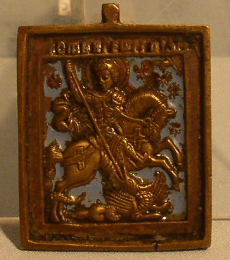 Heiliger Georg.19.Jahrhundert.Bronze mit blauem Email.Sehr gut erhalten.7,1x5,5cm.