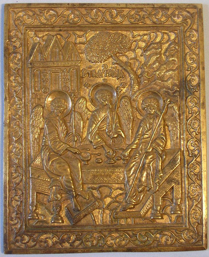Heilige Dreifaltigkeit,östlicher Typus.19.Jahrhundert.Sehr gut erhalten.20,4x16,5cm.Seltenes Sammlerstück! Zu jeder Bronze Ikone wird eine Expertise mitgeliefert.