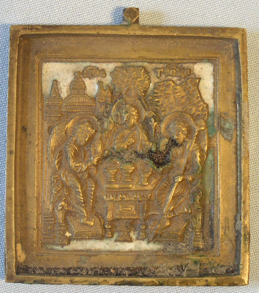 Heilige Dreifaltigkeit,östlicher Typus.19.Jahrhundert.1 farbig emailliert.6,2x5,5cm.