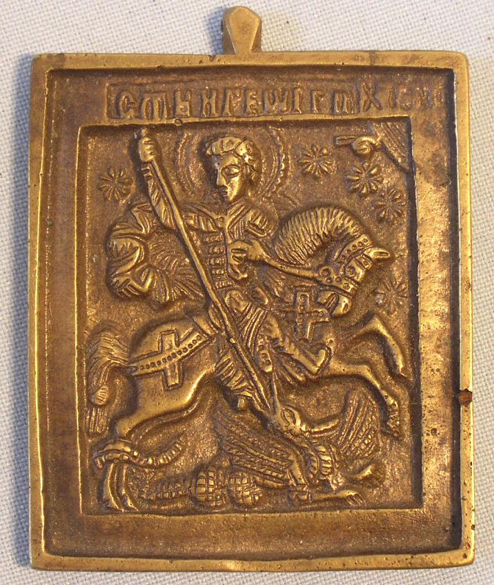 Heiliger Georg,den Drachen tötend.19.Jahrhundert.6,6x5,2cm.