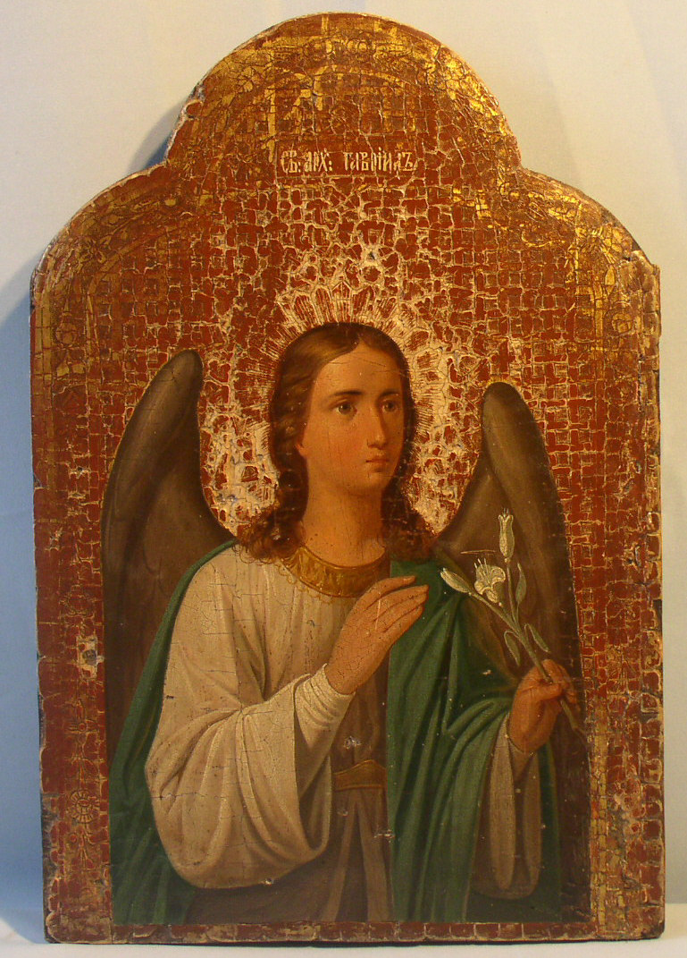 Erzengel Gabriel.Russisch,2.Hälfte 19.Jahrhundert.45x31cm.Geringe Restaurierungen am Rand,die Ikone wurde unten leicht beschnitten.Seltene Engelikone.