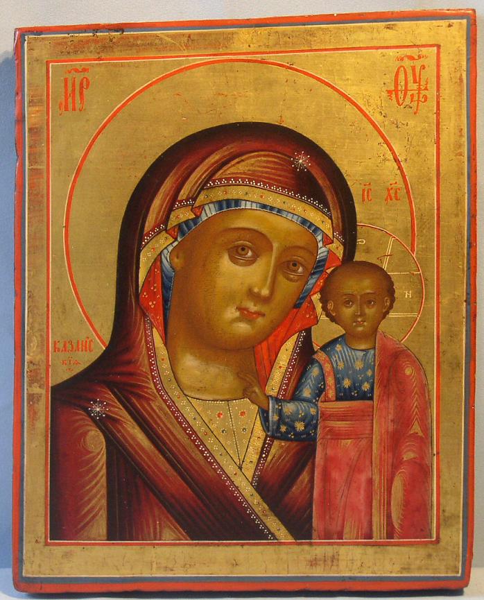 Gottesmutter von Kasan.Russisch,19.Jahrhundert (um 1840).32x25cm.Sehr gute Qualität der Malerei.Perfekte Vergoldung,auch über den Rand.Sammlerstück!