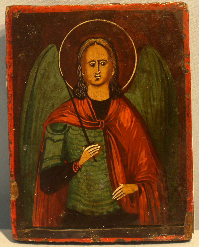 Erzengel Michael (?).Russisch,um 1850.Gut erhaltene,kleine Engelikone.14x11cm.