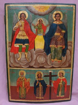 2 Felder Ikone 19.Jhd Erzengel Michael & Gabriel