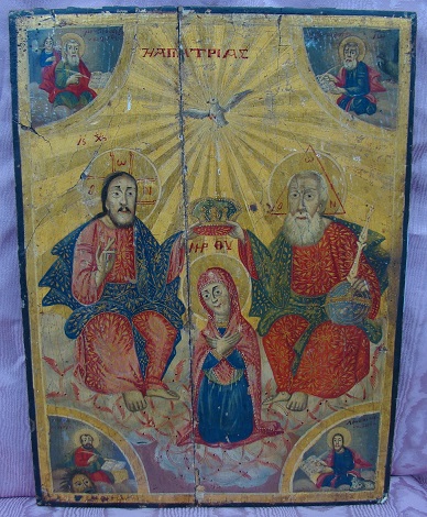 Triptychon 19.Jhd Gottesmutter Portatissa,Nikolaus & Theodoros